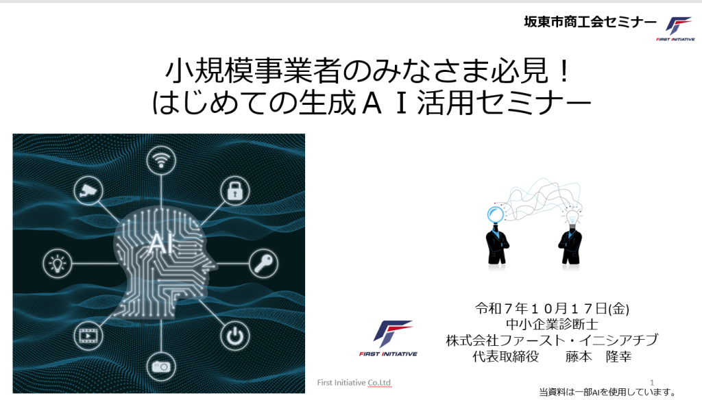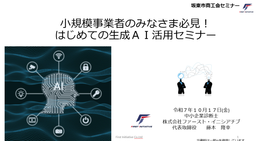 2025.10.17 坂東市商工会 小規模事業者のみなさま必見!はじめての生成AI活用セミナー 坂東市商工会 小規模事業者のみなさま必見!はじめての生成AI活用セミナー 令和7年10月17日(金) Tweet Share AI中小企業向けセミナー商工会坂東市坂東市商工会茨城県 浜北商工会 AI活用セミナー(初級編)前の記事