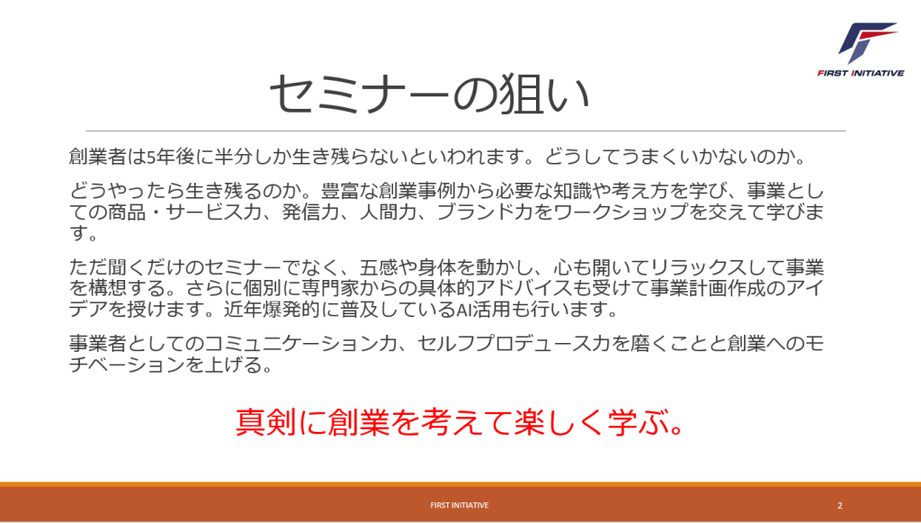 複数回受講者や卒業生が事例発表したりにぎやかな初日となりました。