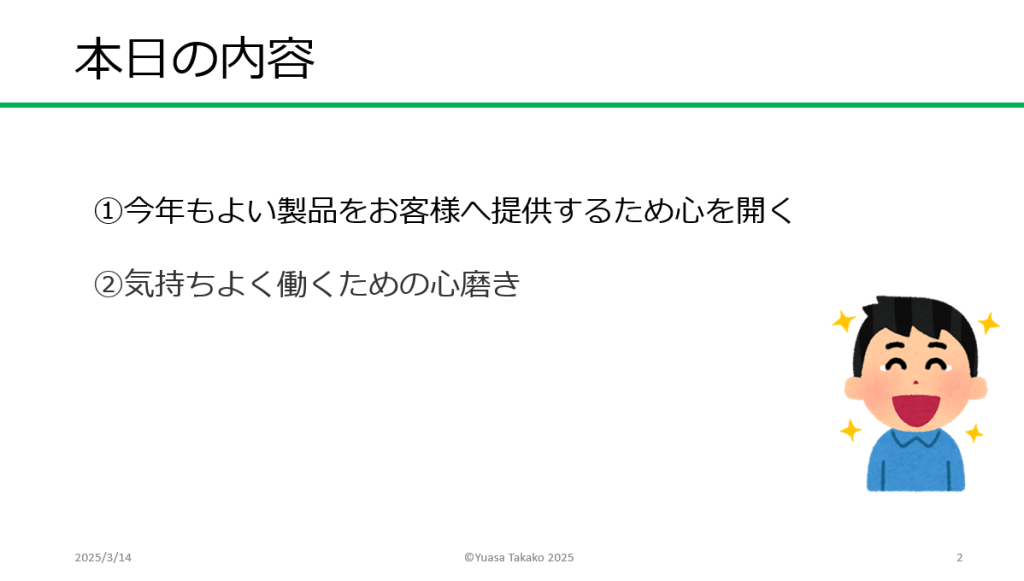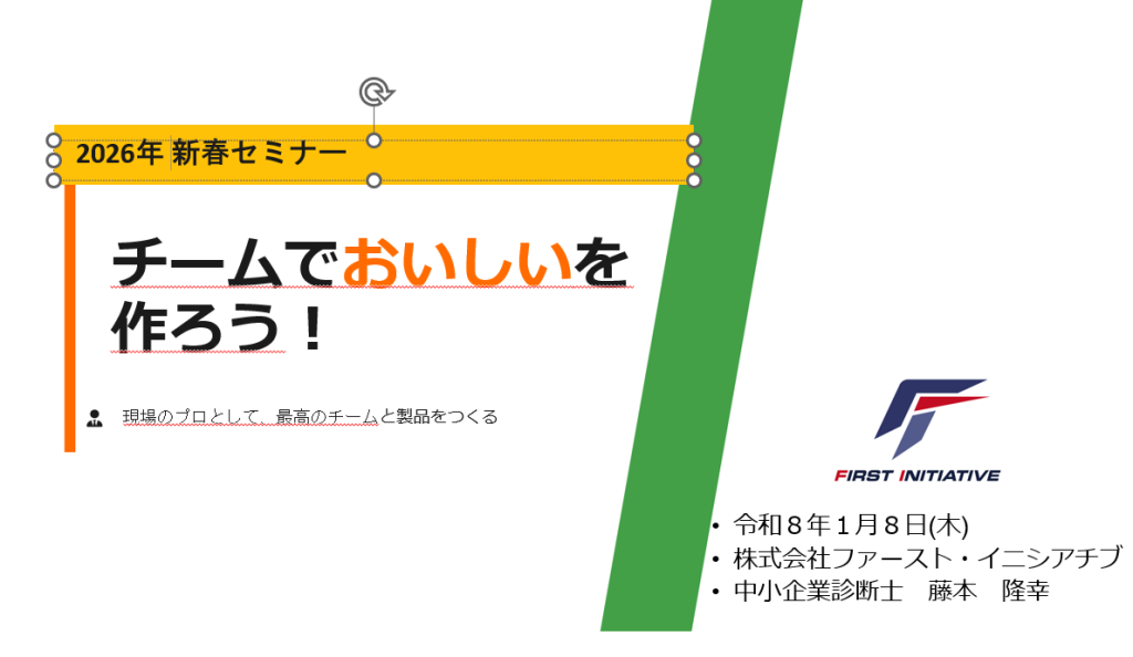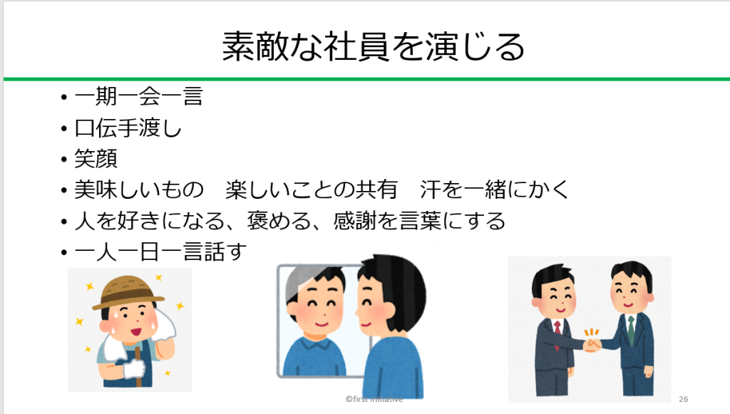 2026.01.8 食品加工業 社員研修 コミュニケーションからハラスメントまで 令和8年1月12日 顧問先の食品加工業への社員研修。 2つの工場で2回に分けて開催。 自己分析、コミュニケーション、ハラスメント、リスク管理、心理的安全性などについて講義しました。 Tweet Share コミュニケーションハラスメントリスク管理対話心理的安全性職員研修食品加工業 常陸太田市 創業セミナー⑤前の記事 墨田区 起業ゼミ1日目 創業の心構えと事例 ~心を開き…次の記事
