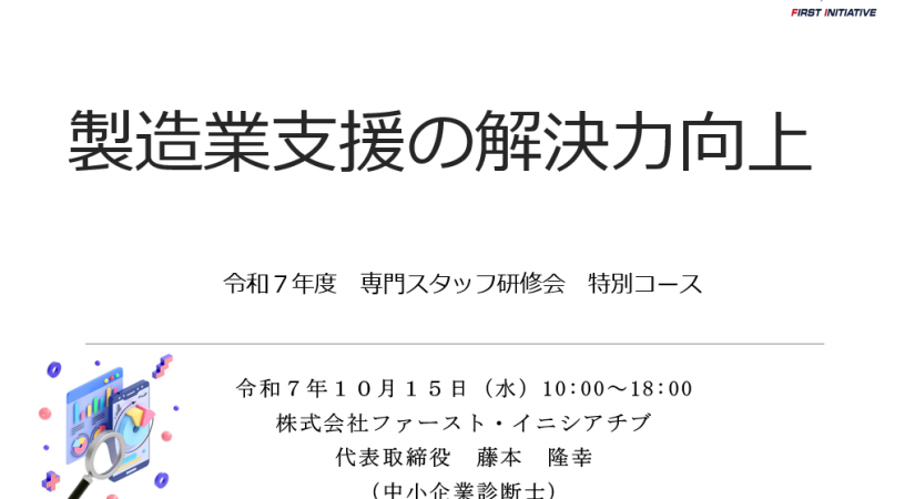 2025.10.15 静岡県商工会連合会 製造業支援の解決力向上(1日目) 令和7年度 専門スタッフ研修会 特別コース 令和7年10月15日(水)10:00~18:00 Tweet Share AIものづくり補助金中小企業白書価格設定商工会商工会議所支援機関向けセミナー板金プレス業環境変化経営戦略経営指導員製造業静岡県静岡県商工会連合会 中小企業診断士コースガイダンス前の記事 静岡県商工会連合会 製造業支援の解決力向上(2日目)次の記事