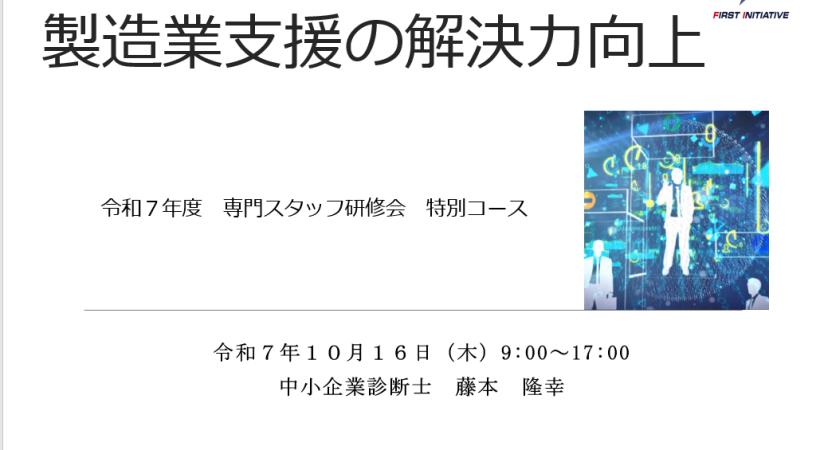 2025.10.16 静岡県商工会連合会 製造業支援の解決力向上(2日目) 令和7年度 専門スタッフ研修会 特別コース 令和7年10月16日(木)9:00~17:00 Tweet Share AIめっき伴走支援商工会商工会議所商工会連合会支援機関向けセミナー経営指導員製造業金属加工 静岡県商工会連合会 製造業支援の解決力向上(1日目)前の記事